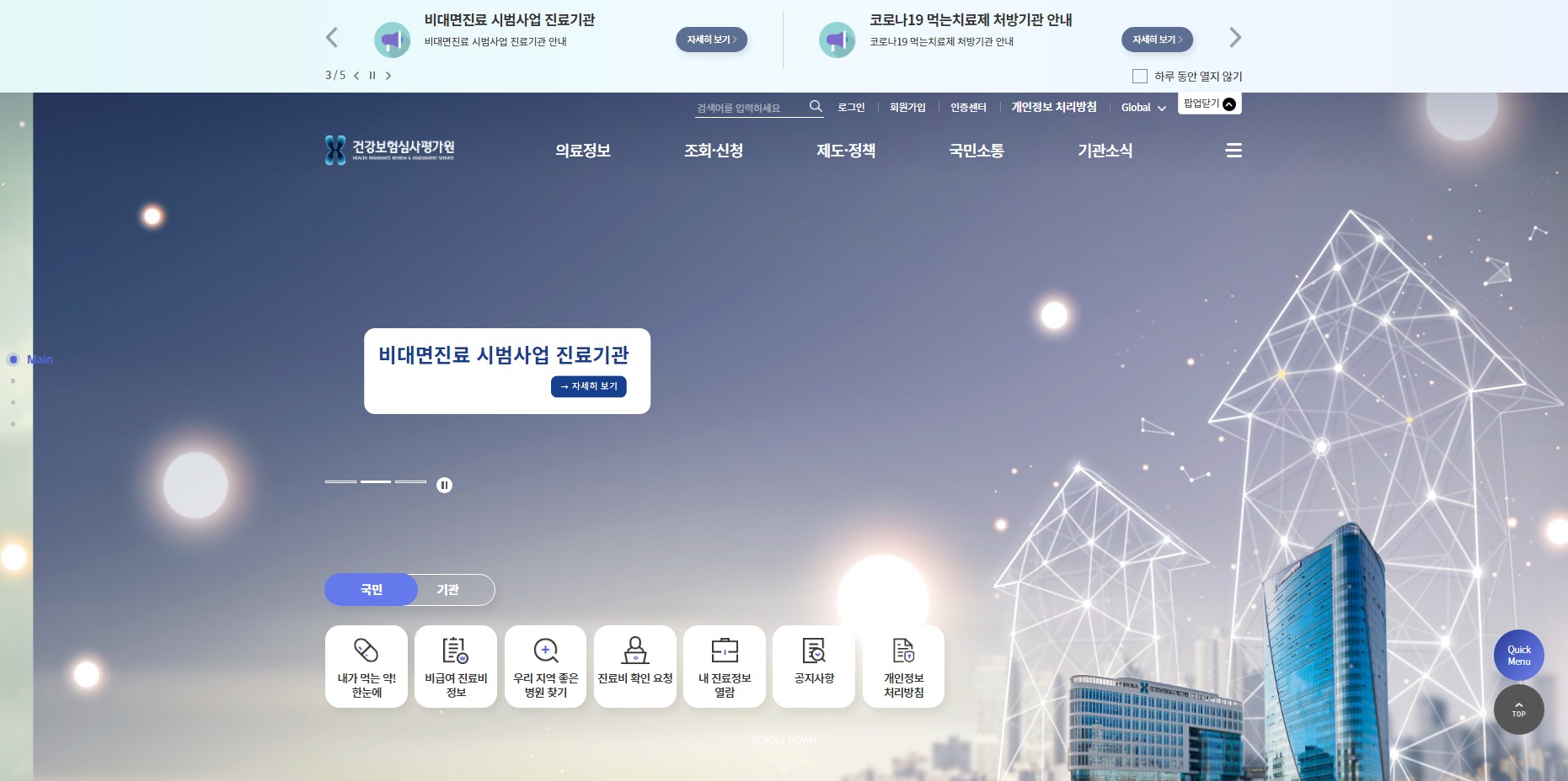 - 정부에서 운영하고 있는 건강보험심사평가원 사이트에 접속