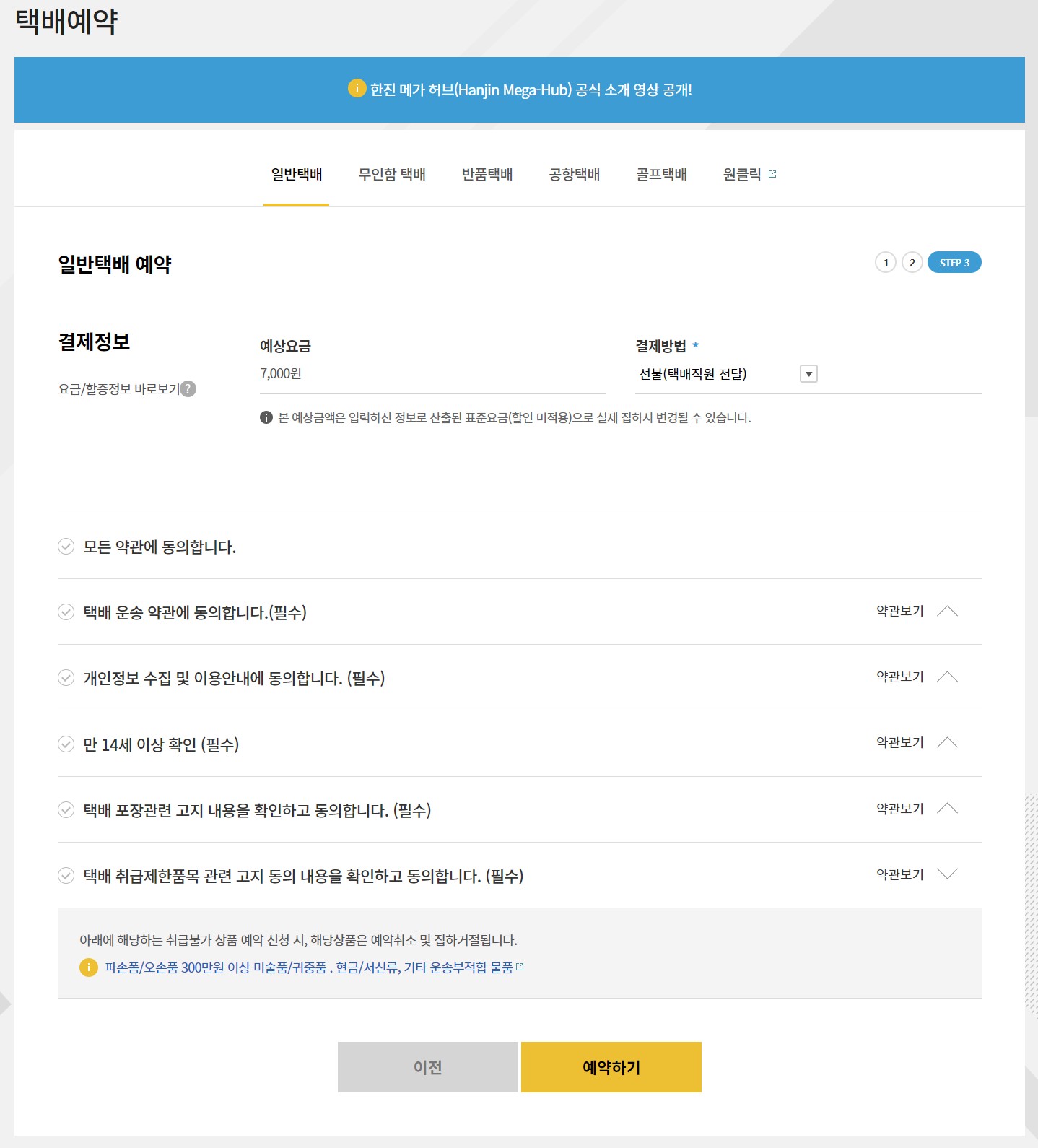 한진택배 예약택배 신청